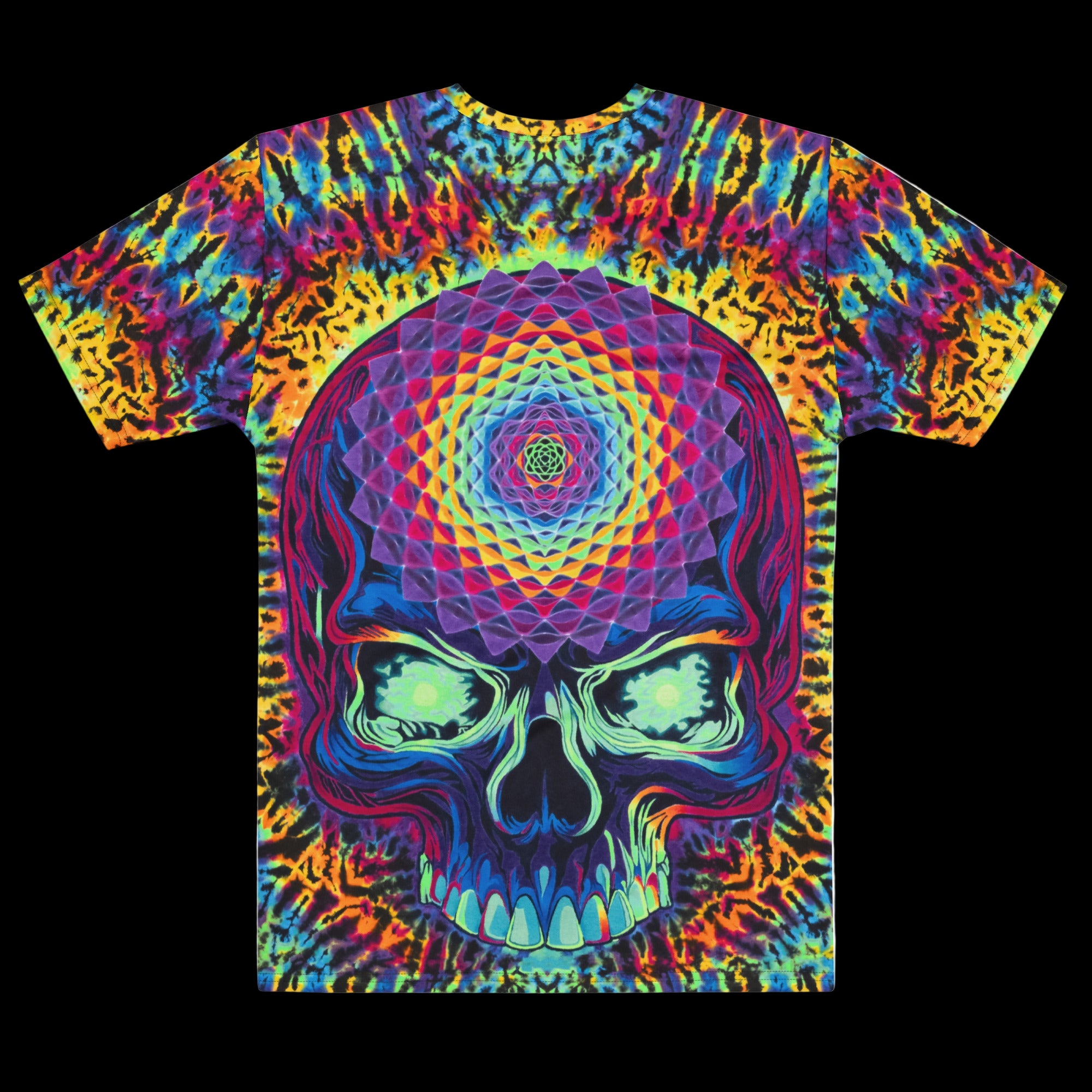 This is a limited print run (NOT HAND DYED NOT UV REACTIVE) of my most recent piece "Stealie 2099". These are Direct to garment printed on 100% cotton shirts. Ships in 4-5 weeks.